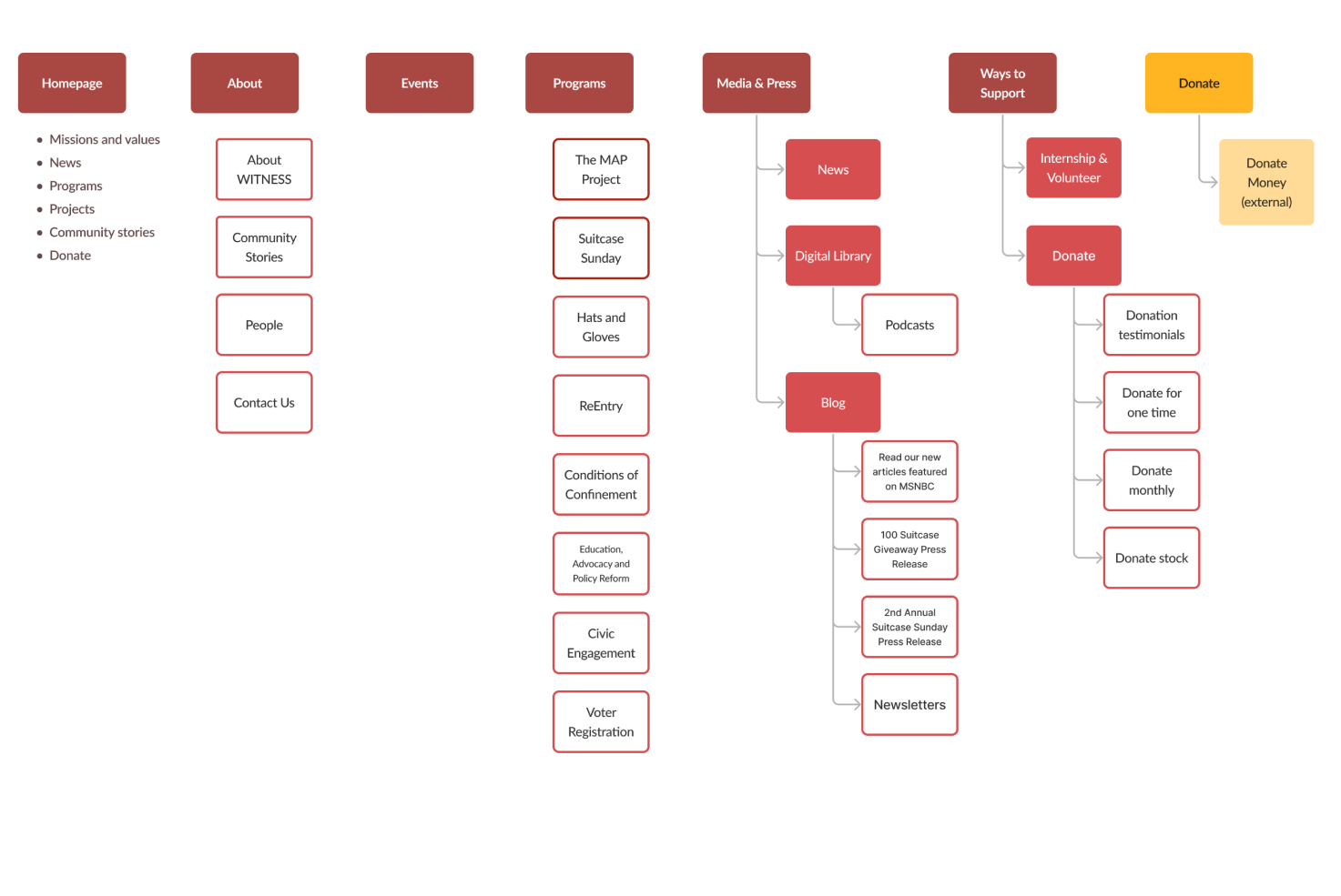 Schematic Research: determine key touchpoints for seamless storytelling experience on WITNESS’s website